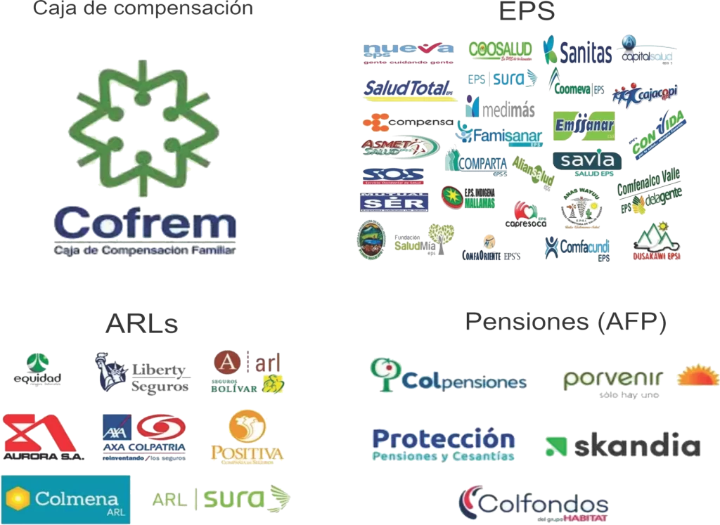 Descripción del paquete: Paquete de salud (EPS, incluye seguridad social y salud respectivamente) – Pensión (AFP) – Caja de compensación (COFREM) – Riegos profesionales 4 (ARL)